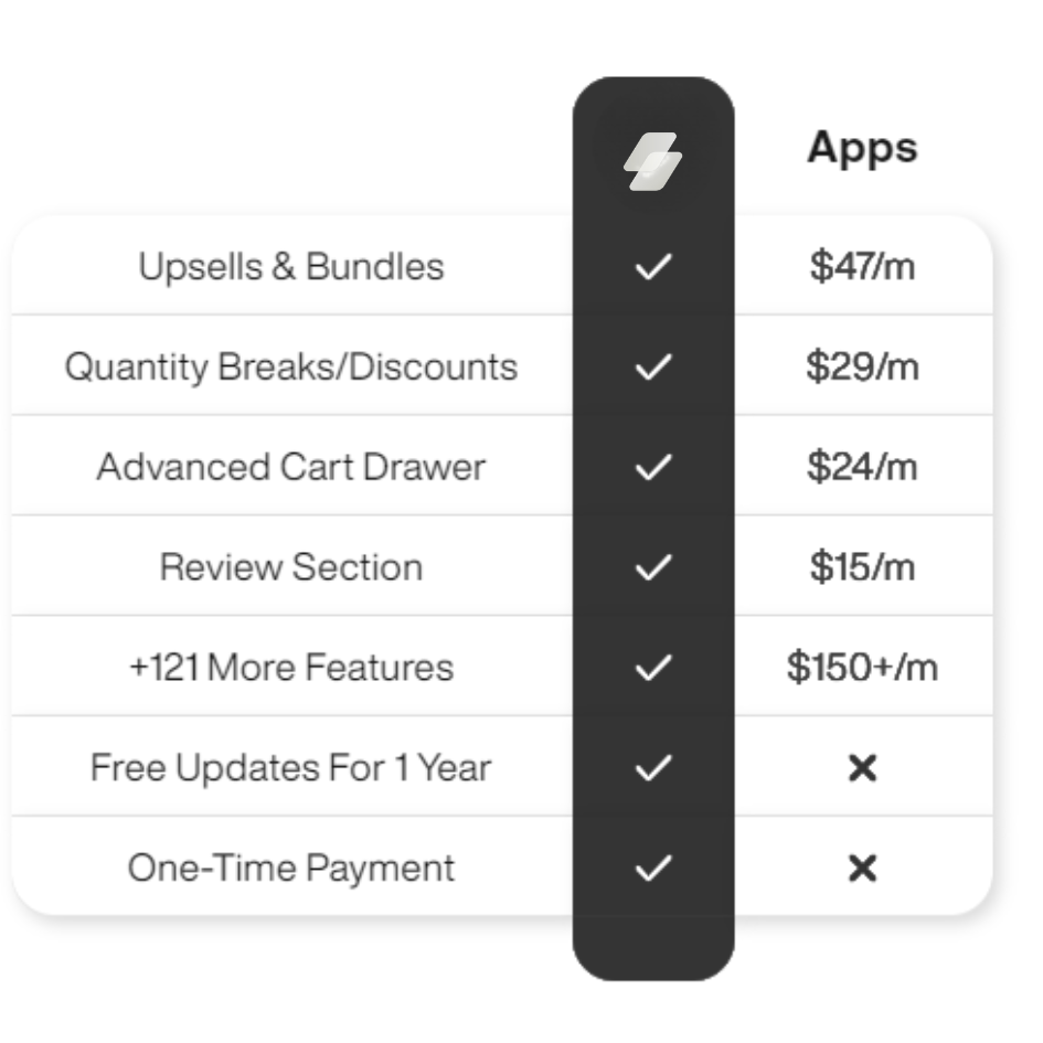 With 120+ built-in features, you can skip bloated third-party apps and still make your store look legit, build trust, and seriously boost conversions.